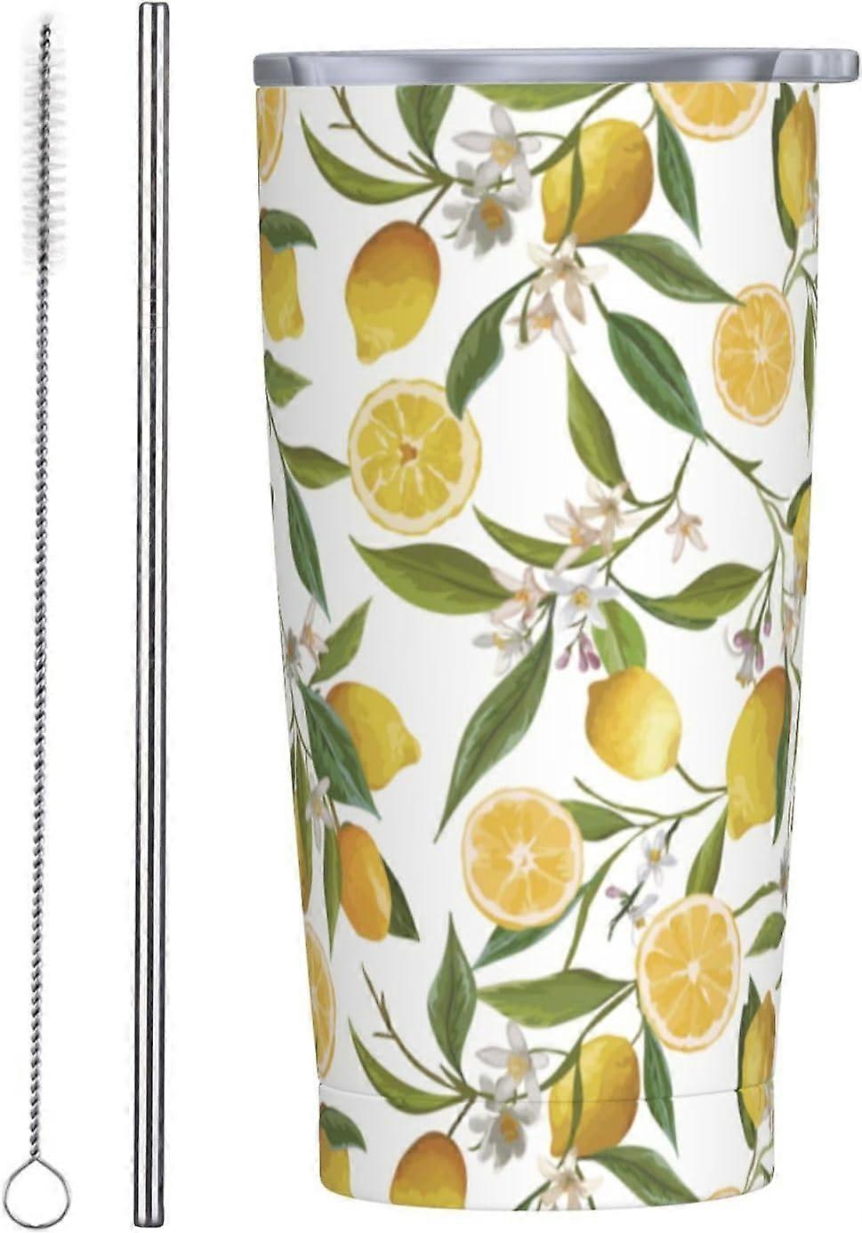 Lemon Tumbler 20oz Green Leaves Stainless Steel Insulated Tumblers with Lid and Straw Travel Coffee Mug Tea Wine Cups Water Bottle Sport Gifts for Wom