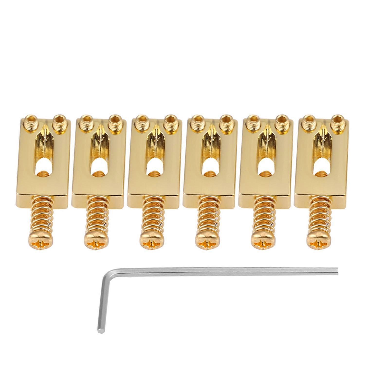 6 Pcs Metal Tremolo Saddles for Electric Guitar Bridge Parts with Wrench(Gold)