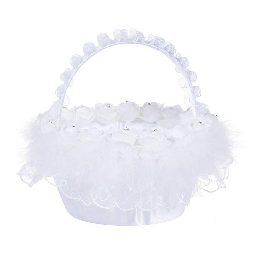 Elegant Large Wedding Flower Girl Basket with Lace Decorated
