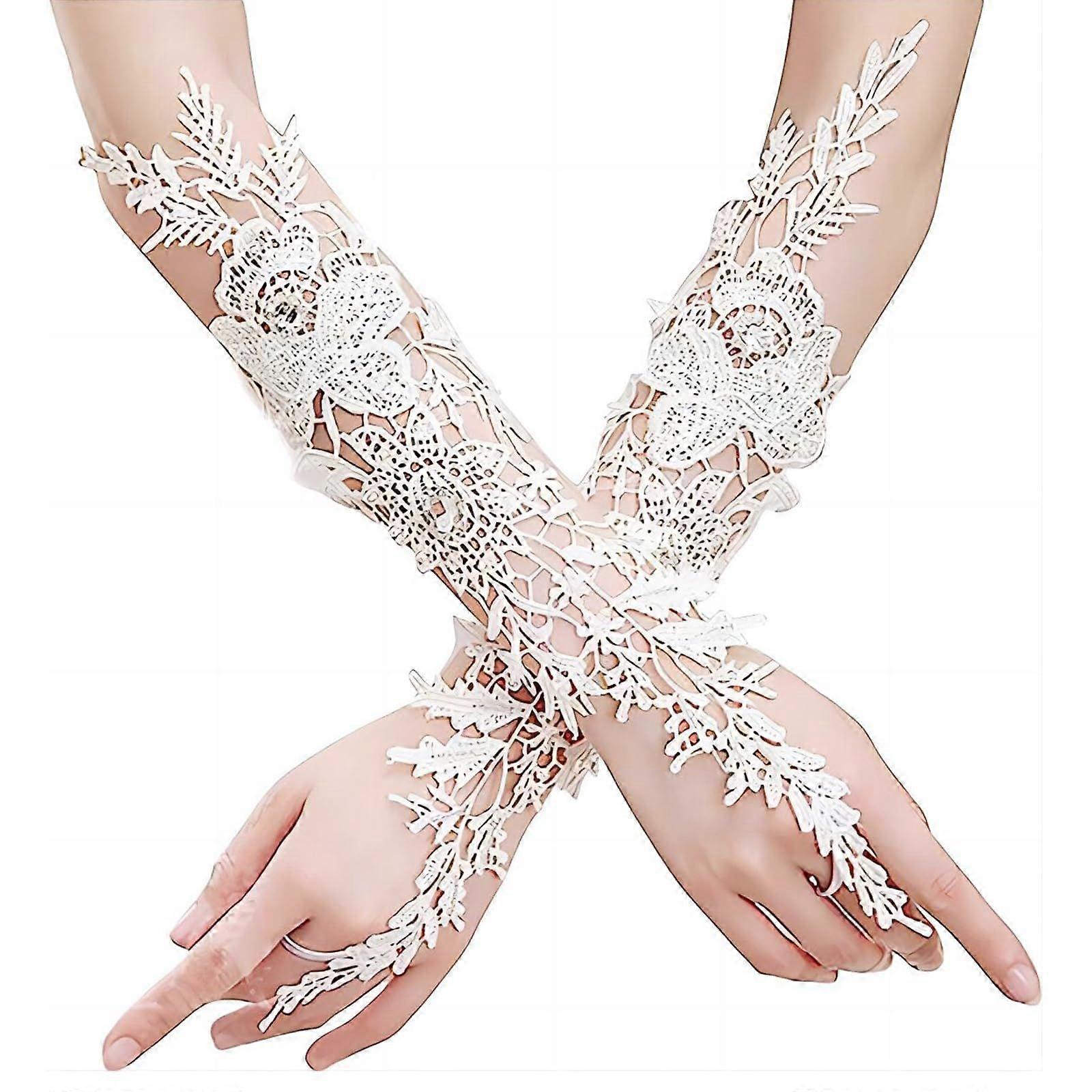 Lace wedding gloves, white fingerless gloves for brides, long lace gloves with floral pattern for women, elegant gloves for wedding parties, dinners a