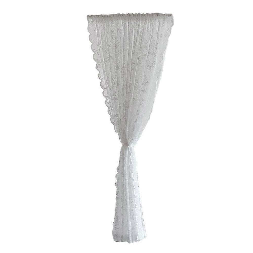 Lace sheer curtains white window living room, satin floral pattern gauze curtains vintage embroidery