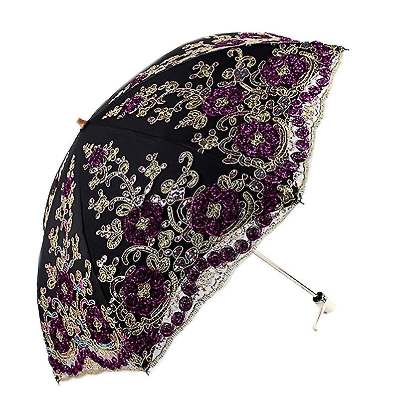Lace Double-deck Uv Protection Parasol 2 Folding Umbrella For Wedding Party Lace Bridal Umbrella