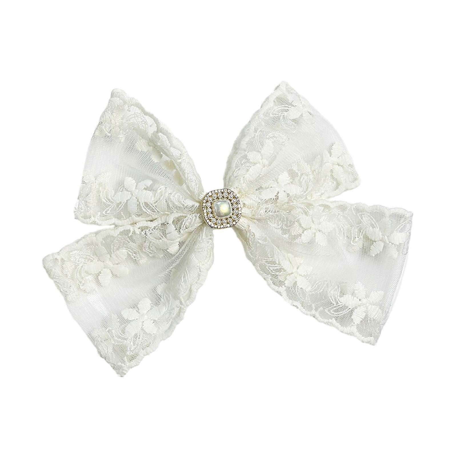 Lace Flower Ribbon Bowknot Hair Clip InsStyle DuckbillHairpin Girl Barrettes Hair Bows PonytailHolder Hair Decors White