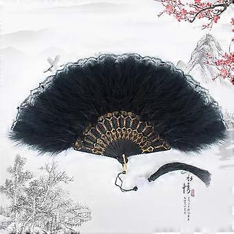 Lace Folding Hand Fan Vintage Handheld Plume Lace Fan Wedding Bride Plume Fan for Party