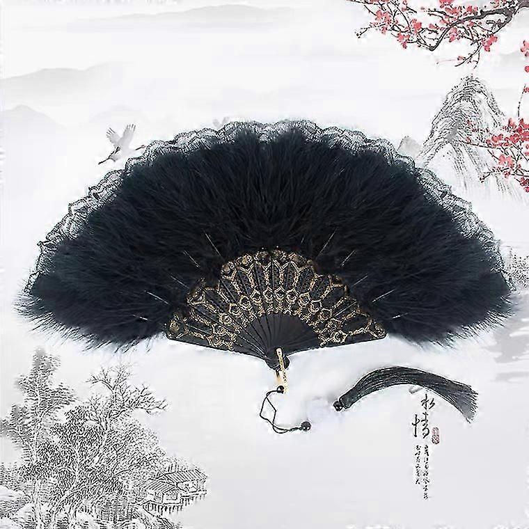 Lace Folding Hand Fan Vintage Handheld Plume Lace Fan Wedding Bride Plume Fan for Party