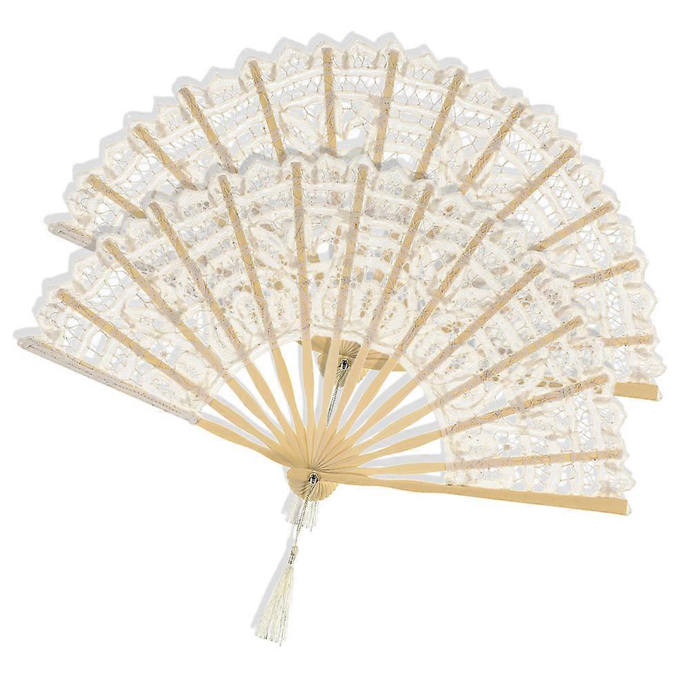 Lace Folding Fan Vintage Hand Fan for Wedding Party Favor 8Pcs Beige