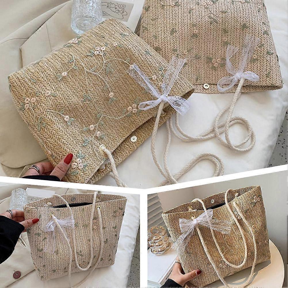 Lace Decorative Woven Tote Bag Floral All-Matching Embroidered Commuter Bag