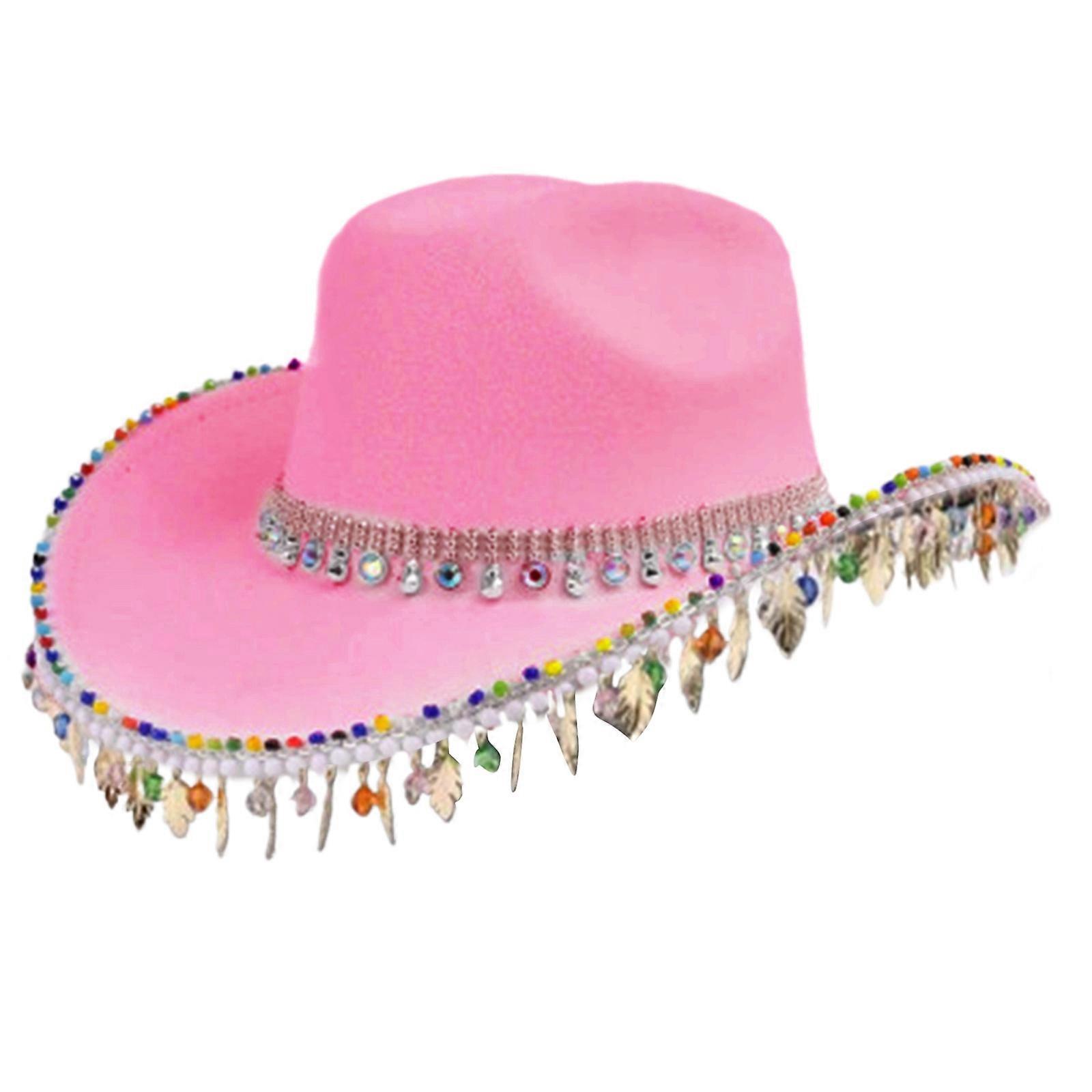 Adjustable Tassels Hat Delicate Rhinestones Hat Various Colorful Hat Beautiful Multifunctional Props Unisex Fashion Hat Pink