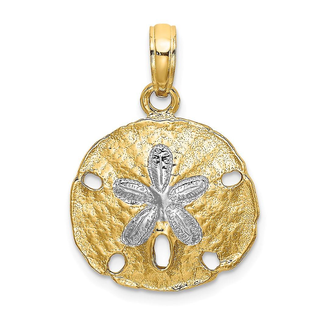 15mm 14k With Rhodium Sand Dollar High Polish And Two color Charm Pendant Necklace for Women