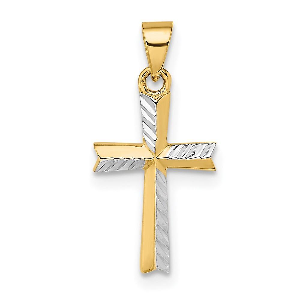 14k With Rhodium Sparkle Cut Small Latin Religious Faith Cross Pendant Necklace 18.58x8.85mm Wide 1.95mm Thick-Pendant f
