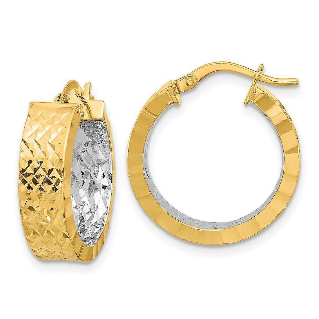 14k With Rhodium Polished and Sparkle Cut Hoop In Out-Hoop Earrings 21.9x20mm Wide 6mm Thick-Hoop Earring for Women