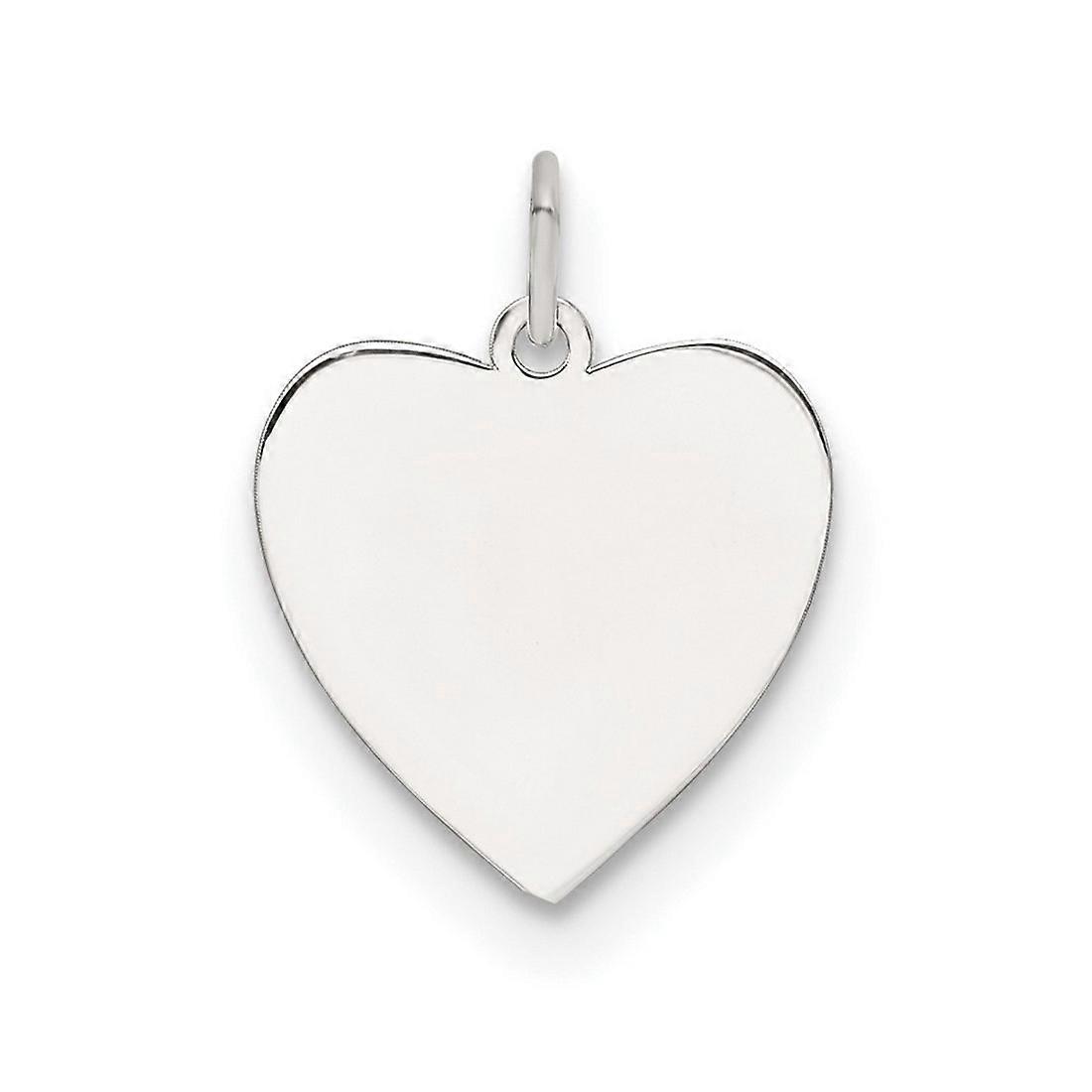 Rhodium Plated Engraveable Love Heart Polished Front Satin Back Disc Charm Pendant Necklace for Women