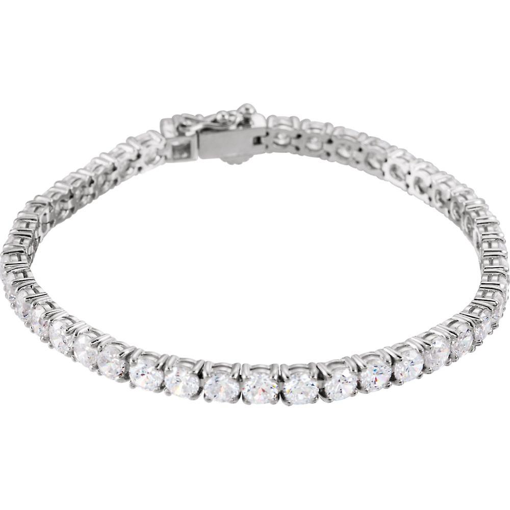 Rhodium Plated 925 Sterling Silver Bracelet Round 3mm Cubic Zirconia Polished 7 Inch CZ-Bracelet Link-Bracelet for Women