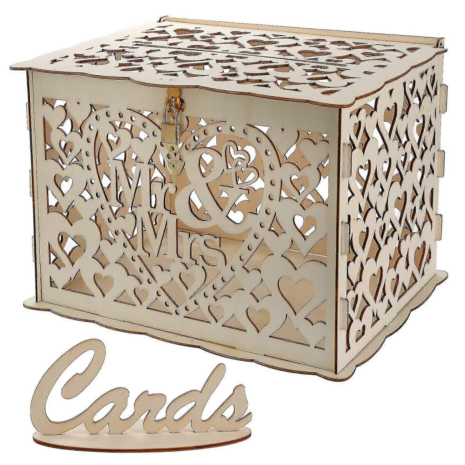 Wood Wedding Card Box With Lock And Cards Sign Rustic Large Hollow Wedding Envelope Box Money Box Gift Card Box