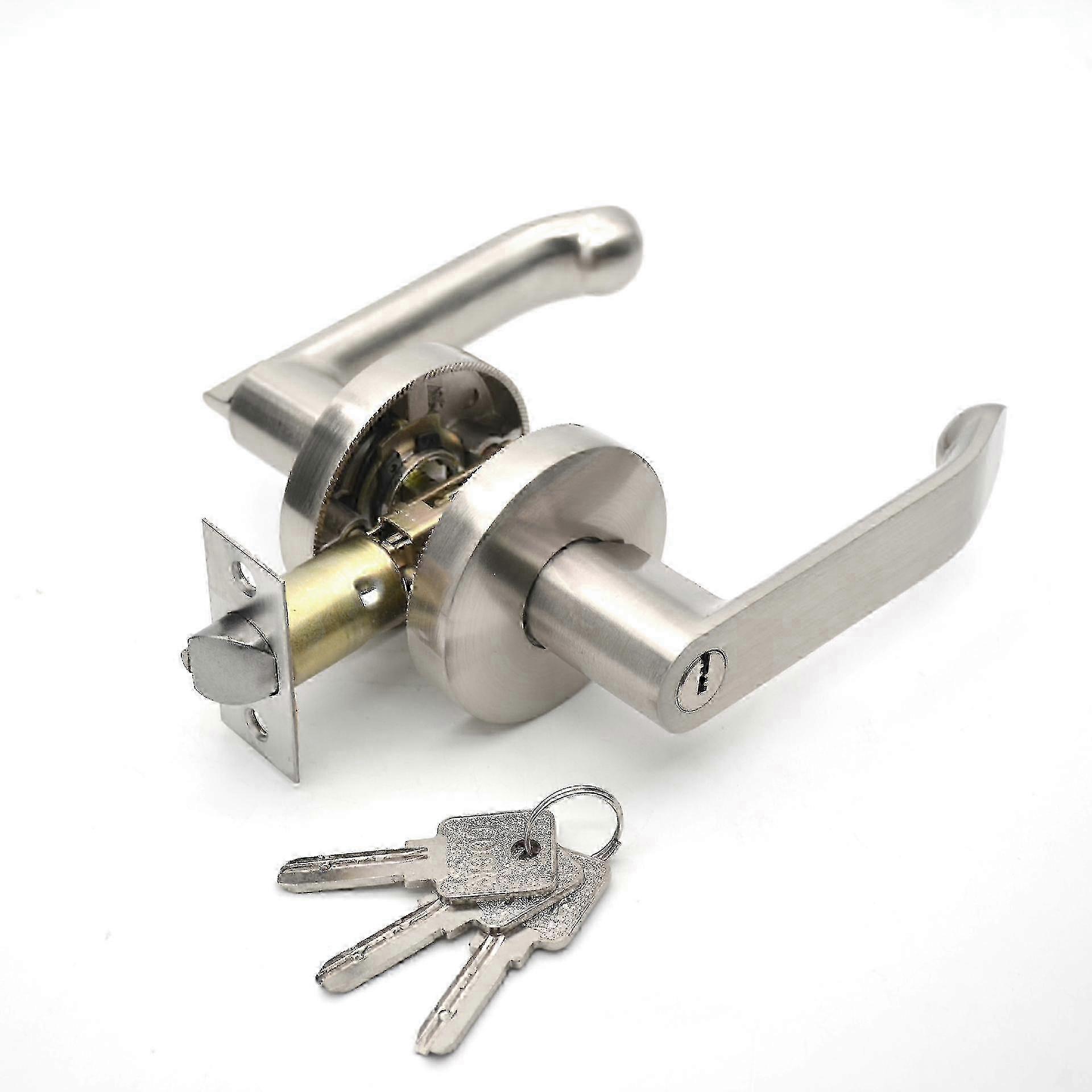 Door Handle With Lock And Key, Chrome Door Handle Set, External Door Handle Lock, Bedroom Door Lock, 1 Pack