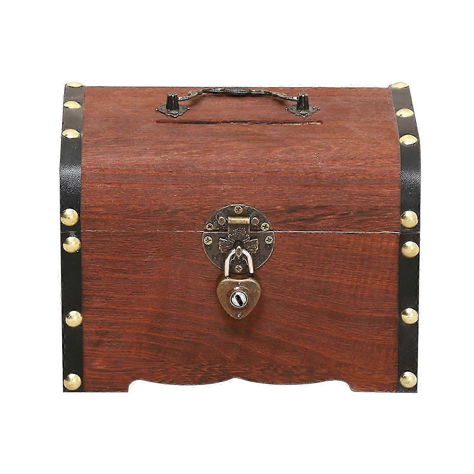 Large Capacity Coin Box With Lock Gift Wooden Treasure Chest compatible Kids Adults-YI WU