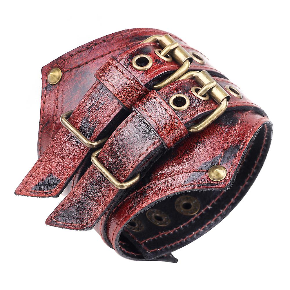 Rock Retro Cowhide Men's Bracelet Two-layer Cowhide Men's Bracelet Wide Leather Bracelet Lovers Gift