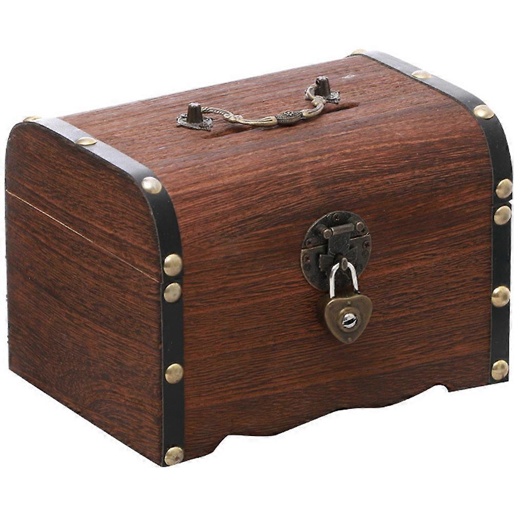 Retro Wooden Piggy Bank with Lock – Compact Coin & Jewelry Storage Box for Home Decor