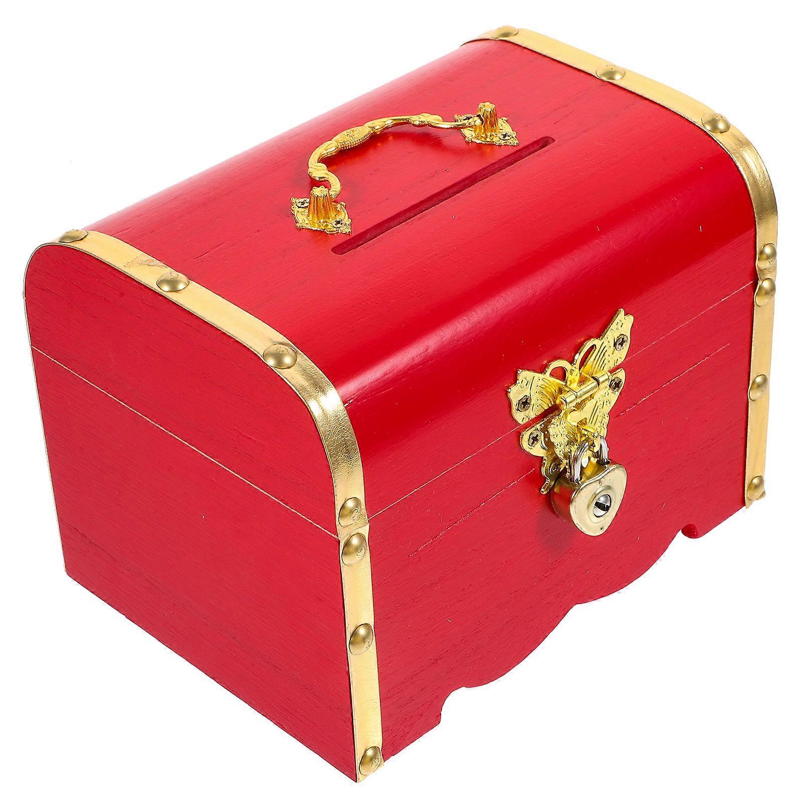 Wooden Piggy Bank with Lock – Retro Storage Box for Home Money Saving Decoration