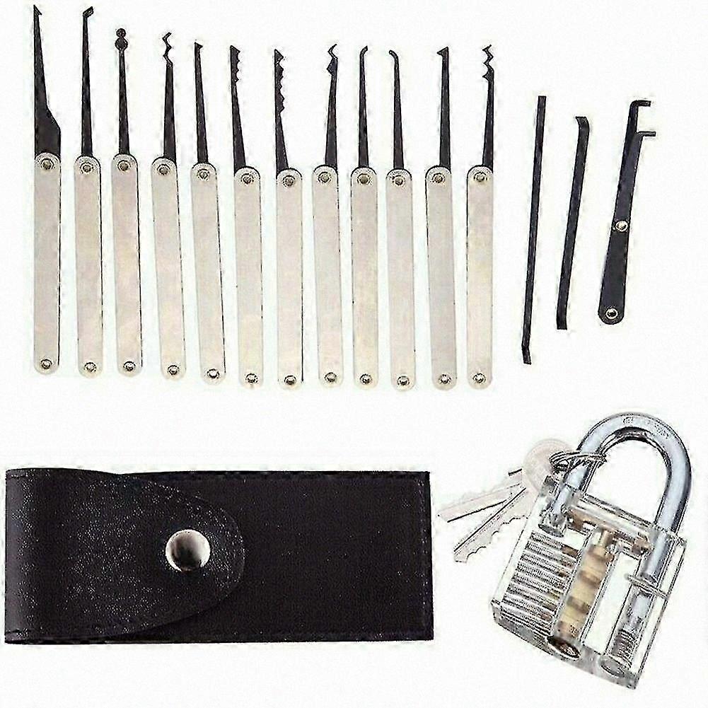 15-Piece Lock Pick Tool Set with Key Extractor and Practice Lock for Unlocking Skills Development