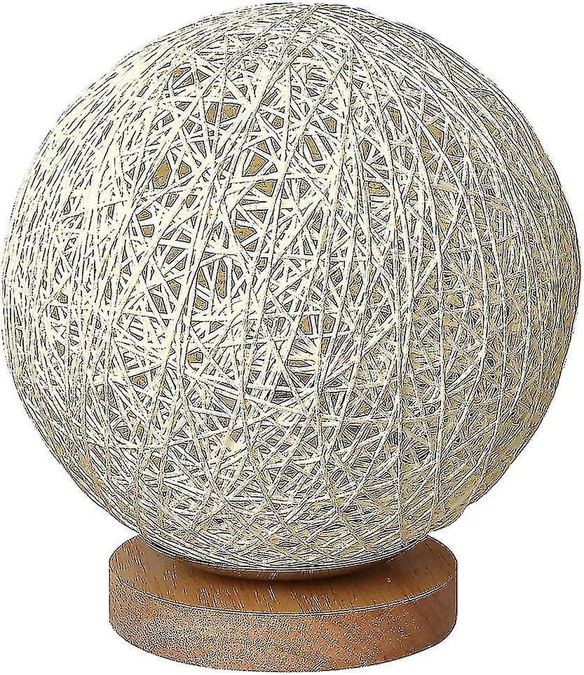 Romantic Solid Wood Table Lamp Bedside Lamp Rattan Ball Round Lampshade With Usb Charging Port Night Light$ Sepak Takraw