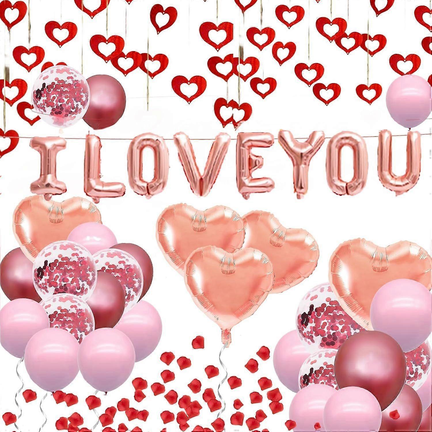 Romantic Valentine's Day Decorations Set - Heart Shaped and 'I LOVE YOU' Foil