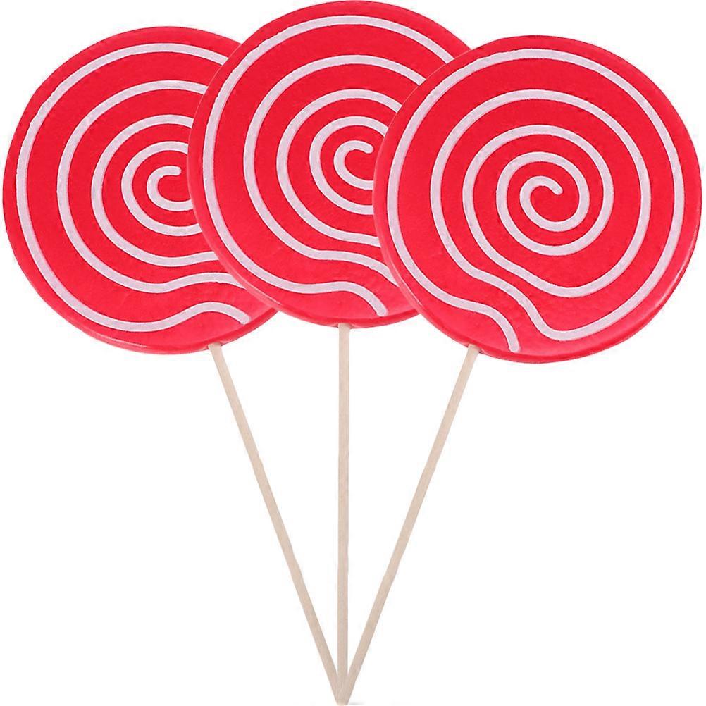 Lollipop Prop Fake Lollipop Model for Kids 3Pcs Red Wooden Resin Decor