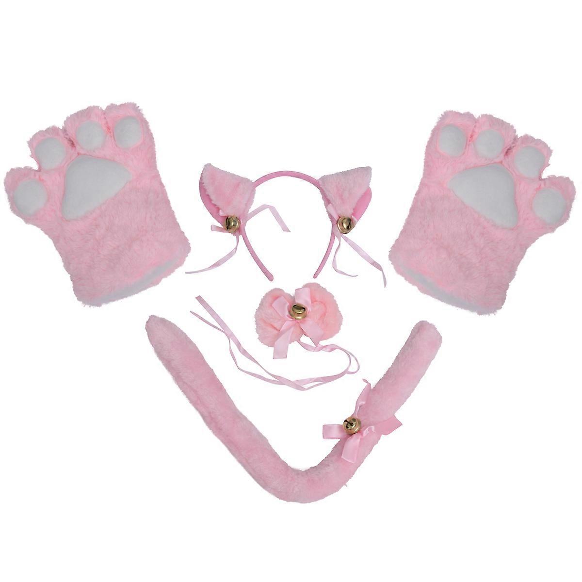 Creative Cat Costume Ears Collar Paws Gloves for Lolita Gothic Party Wear Pink 5Pcs