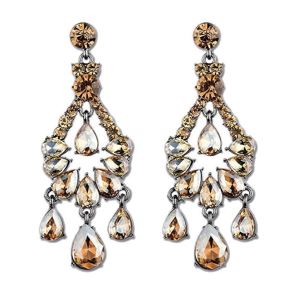 Long Art Deco Vintage Antique Retro Style Citrine Honey Amber Topaz Rhinestone Prom Pageant Statement Chandelier Earrings