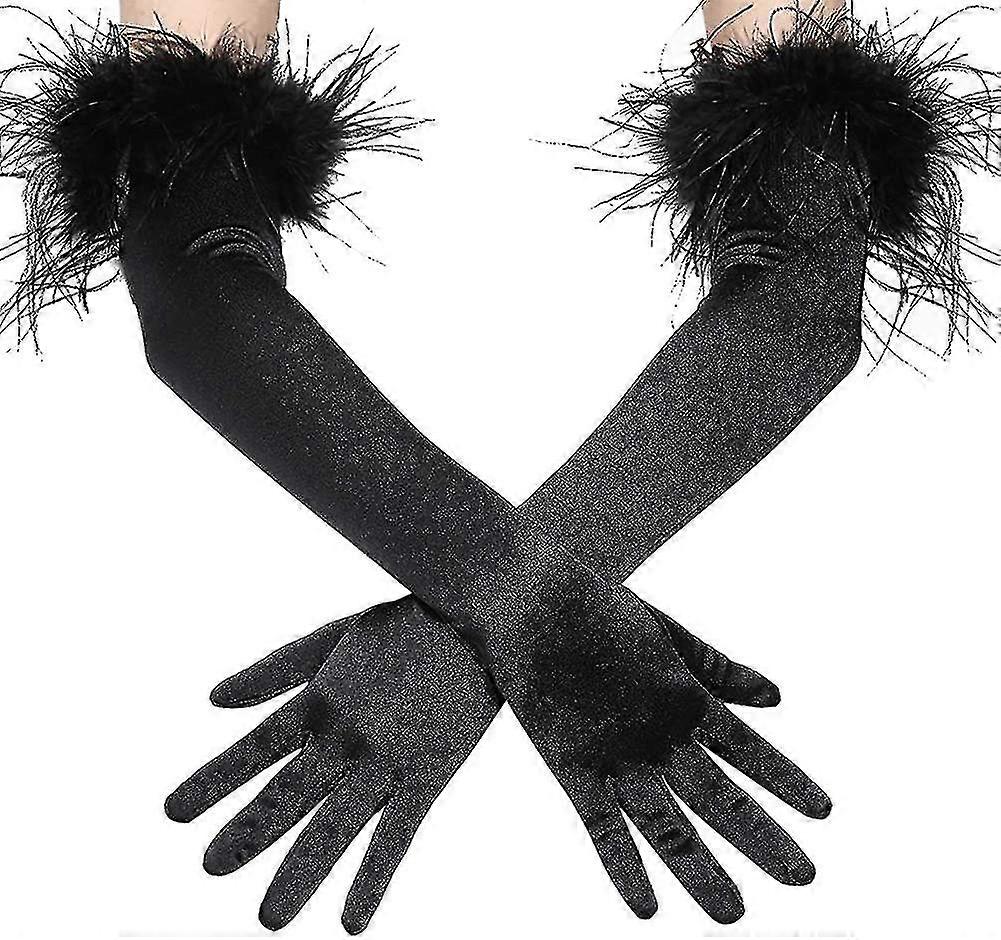 Long Opera Gloves Satin Feather Gloves 1920s Style Bridal Fancy Dress Gloves