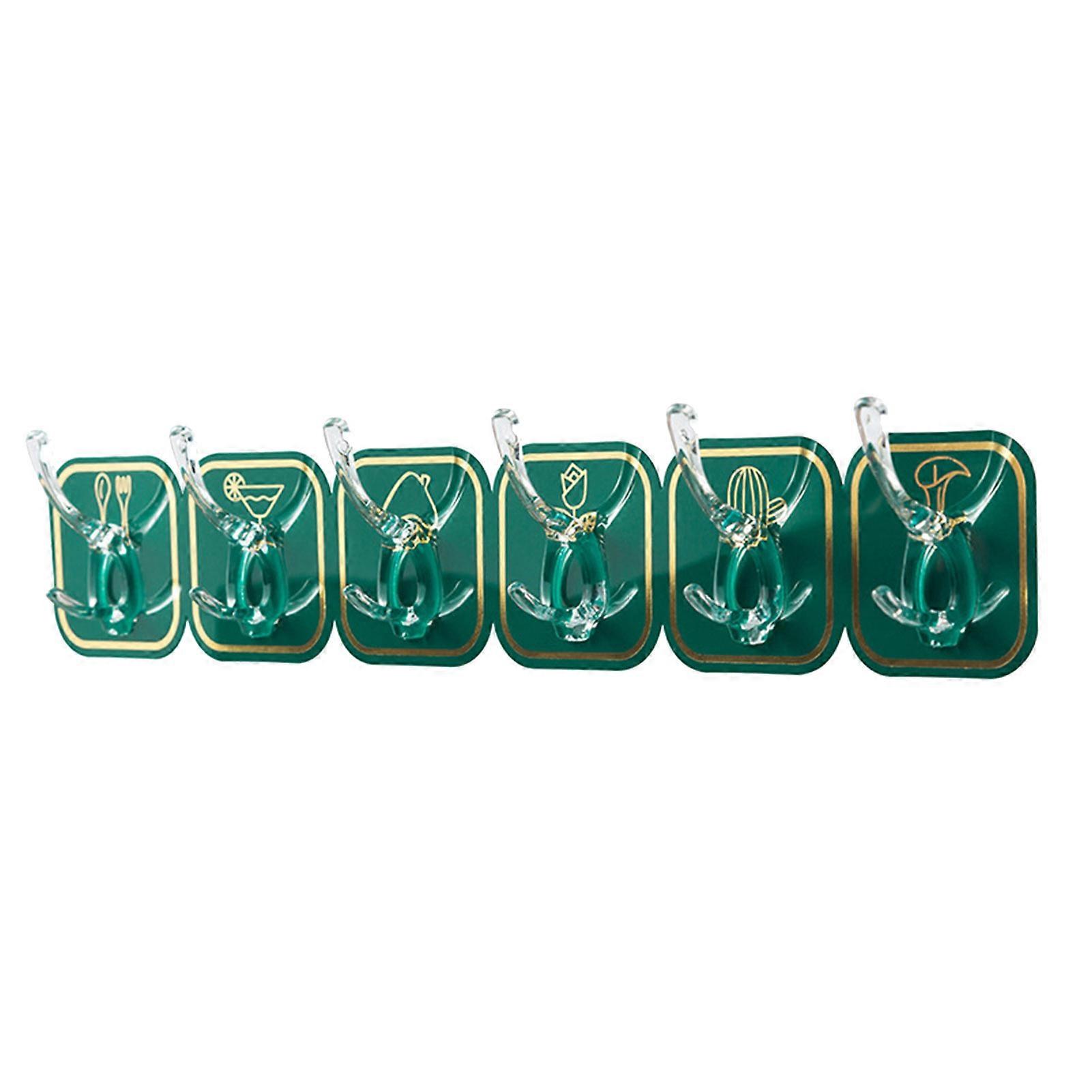 Long Strip Hook Wall Mount Punch Free Traceless Strong Adhesive Plastic for Kitchen Green