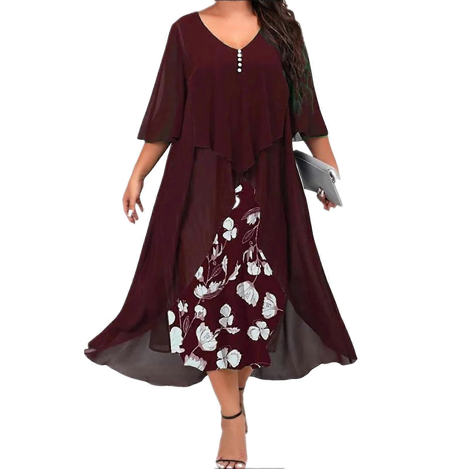Featuring V neckline, this women dress can greatly enhance your charm. The women dress, which has loose waist design, can totally meet the needs of different body types. With floral print, swing hem and chiffon splicing design, this women dress can make you look sweet and add the sense of elegance. It is constructed of polyester material. There are 7 sizes for you to choose from: M, L, XL, 2XL, 3XL, 4XL, 5XL. It is suitable for daily, outdoor, party, holiday, streetwear, dating, etc. Item Name: Long Dress Material: Polyester Gender: Women Style: Casual Season: Autumn Length: Long Size Type: Plus Collar Type: V Neck Sleeve Length: Half Sleeves Features: Comfortable, Splicing Design, Soft Size Details: Size: M, Bust: 105cm/41.34", Dress Length: 35cm/13.78", Hip: 117cm/46.06", Sleeve: 113cm/44.49"(Approx.) Size: L, Bust: 110cm/43.31", Dress Length: 35.5cm/13.98", Hip: 122cm/48.03", Sleeve: 114cm/44.88"(Approx.) Size: XL, Bust: 115cm/45.28", Dress Length: 36cm/14.17", Hip: 127cm/50", Sleeve: 115cm/45.28"(Approx.) Size: 2XL, Bust: 120cm/47.24", Dress Length: 36.5cm/14.37", Hip: 132cm/51.97", Sleeve: 116cm/45.67"(Approx.) Size: 3XL, Bust: 125cm/49.21", Dress Length: 37cm/14.57", Hip: 137cm/53.94", Sleeve: 117cm/46.06"(Approx.) Size: 4XL, Bust: 130cm/51.18", Dress Length: 37.5cm/14.76", Hip: 142cm/55.91", Sleeve: 118cm/46.46"(Approx.) Size: 5XL, Bust: 135cm/53.15", Dress Length: 38cm/14.96", Hip: 147cm/57.87", Sleeve: 119cm/46.85"(Approx.) Notes: Due to the light and screen setting difference, the item's color may be slightly different from the pictures. Please allow slight dimension difference due to different manual measurement. Package Includes: 1 x Long Dress