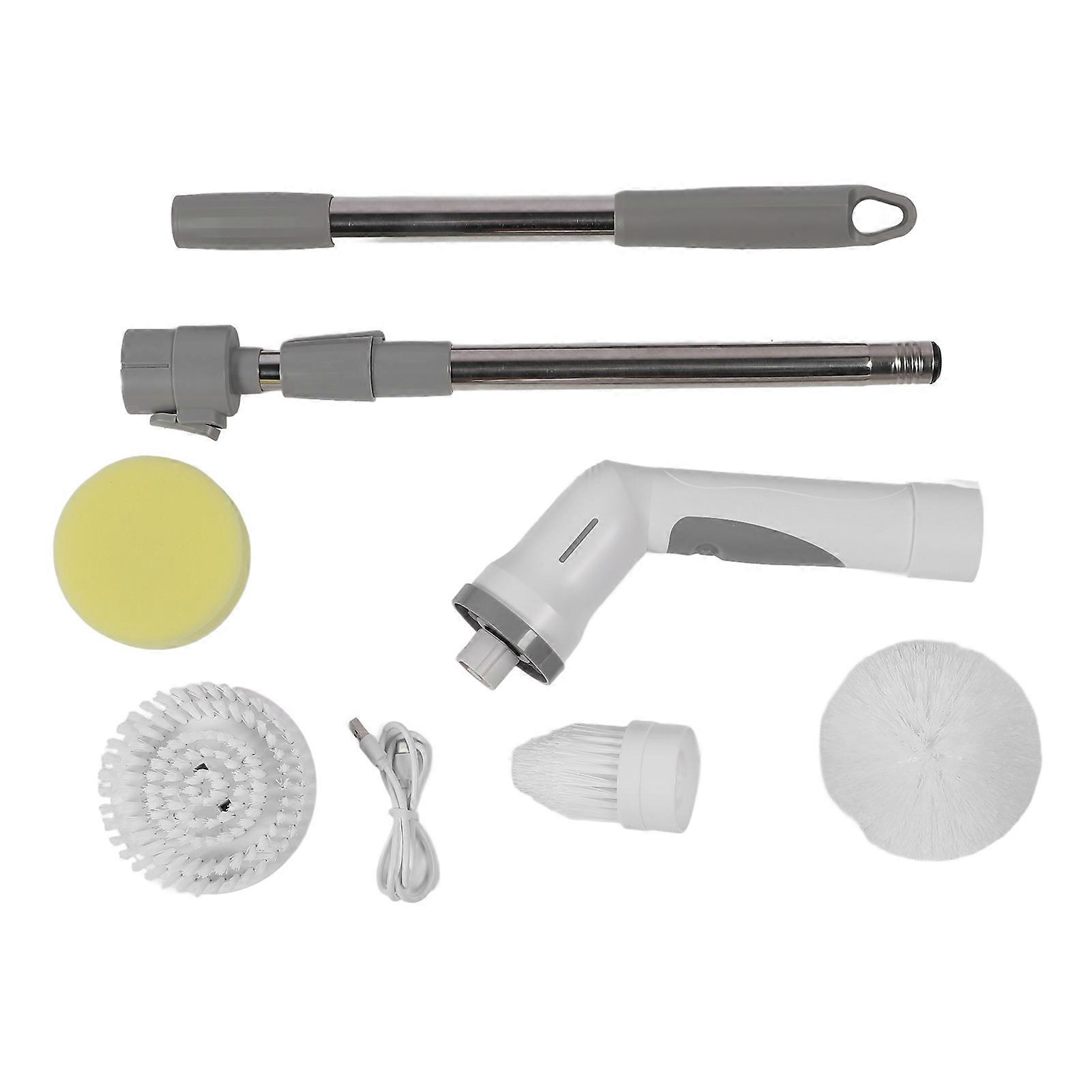 Electric Spin Scrubber with Long Handle 3 Brush Head 1 Sponge Head IPX65 Water Resistant Dual Speeds Battery Level Display Electric Cleaning Brush