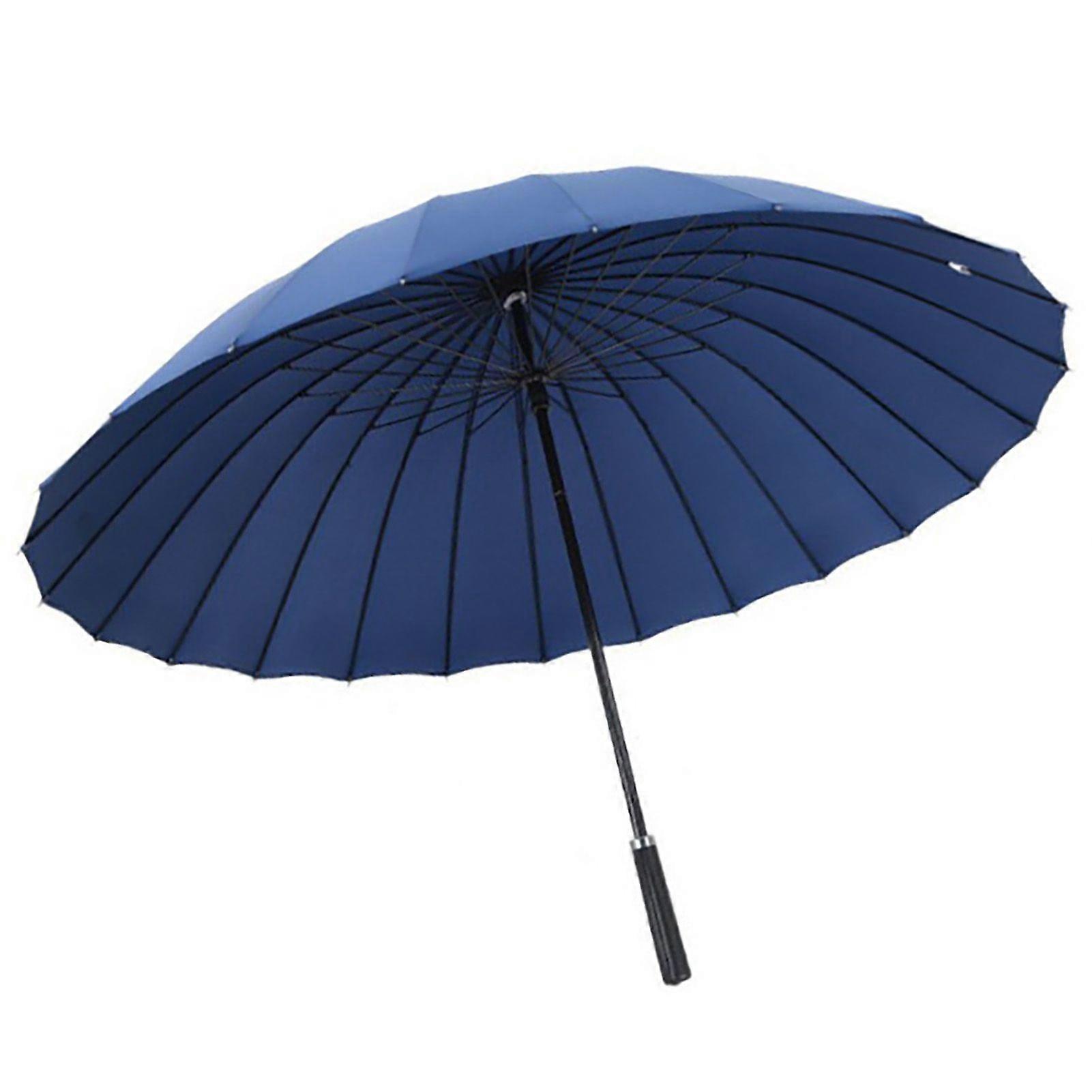 Long Handled Umbrella 24 Rib Large Windproof Reinforced Straight Umbrella for Outdoor Gift Navy Blue