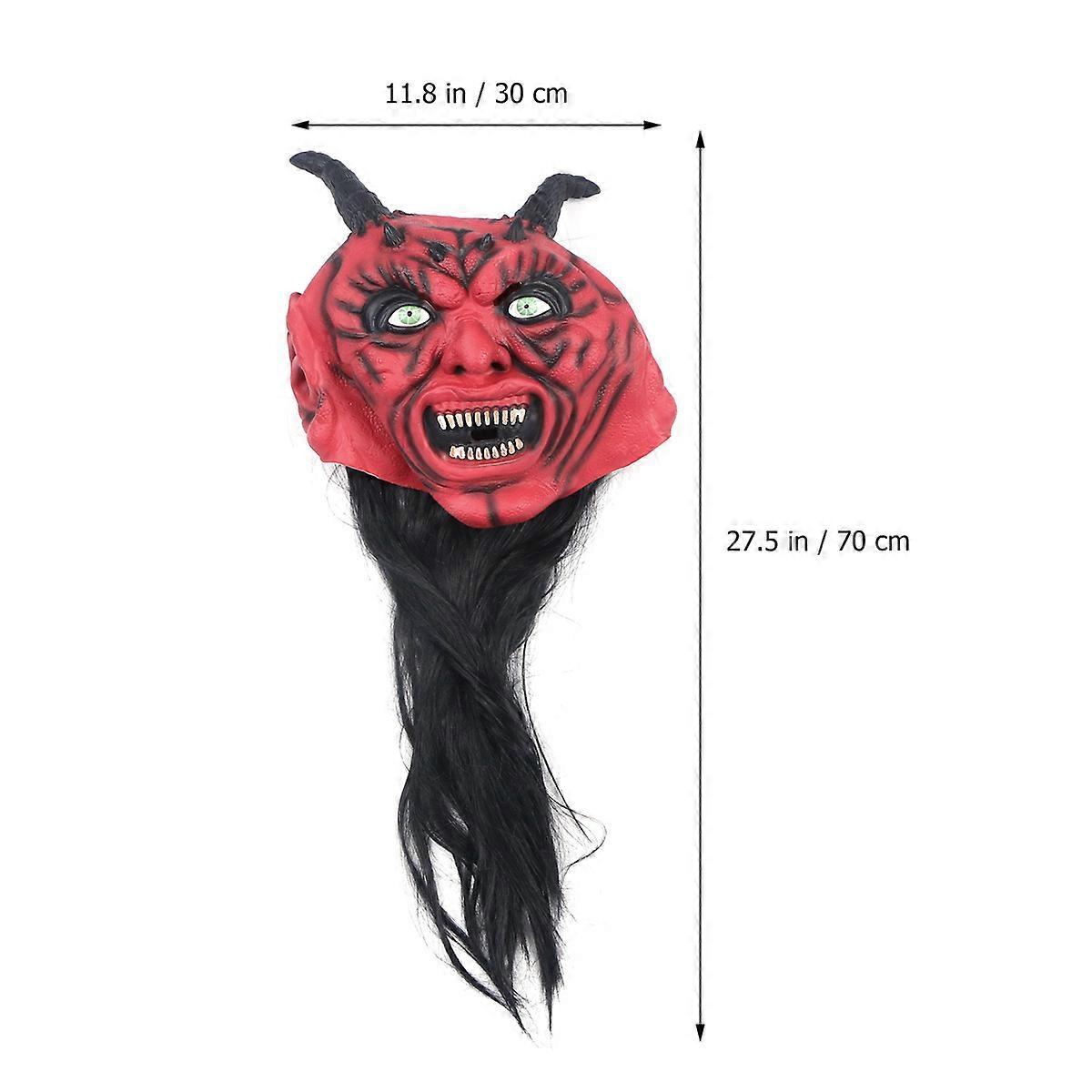 Long Hair Red Face Prank Mask Ox Horn Mask Performance Props Cosplay Party Prop Latex Mask