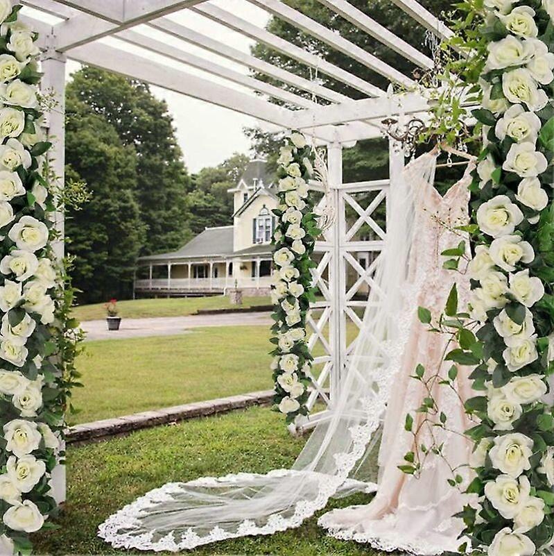 Rose Garland, Fake Rose Tendrils, Artificial Silk Garland for Home, Office, Arch and Garden Decoration White