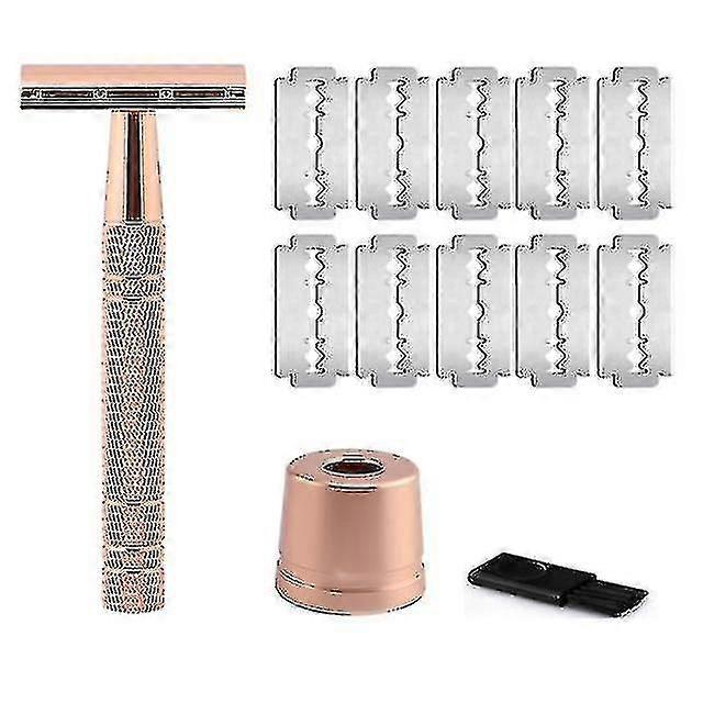 Rose Gold Razor Classic Double Edge Safety Razor For Mens Shavingwomens Hair Removal Free 10 Shaving Blades