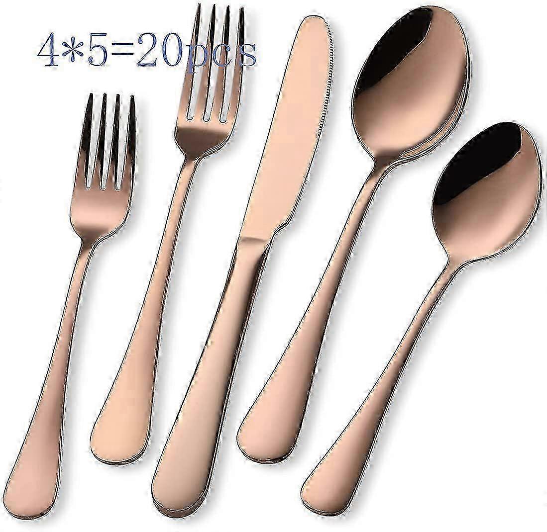 Rose Gold Silverware Set, 20 Piece Stainless Steel Flatware Cutlery Set for 4, Mirror Finish, Dishwasher Safe