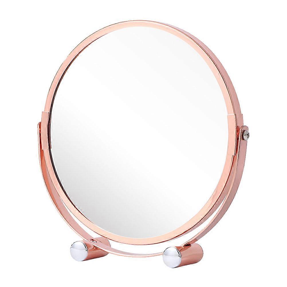 Rose Gold Desktop Mirror with Lights for Beauty Simple Design Durable Glass and Steel