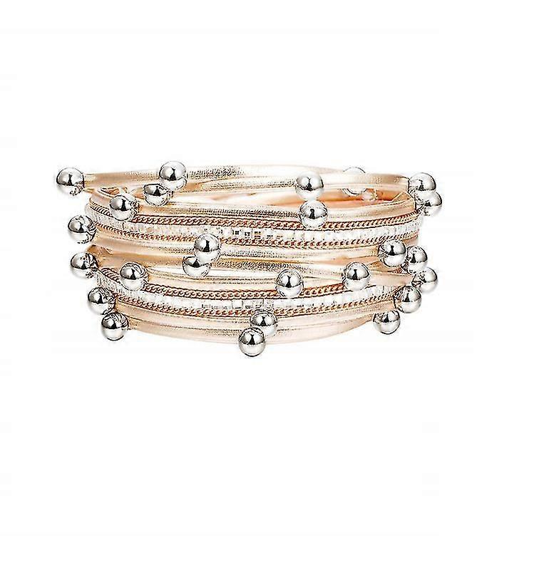 Rose Gold Tone Multilayer Wrap Bracelets Leather Cuff Bracelets Stackable Bracelets Set