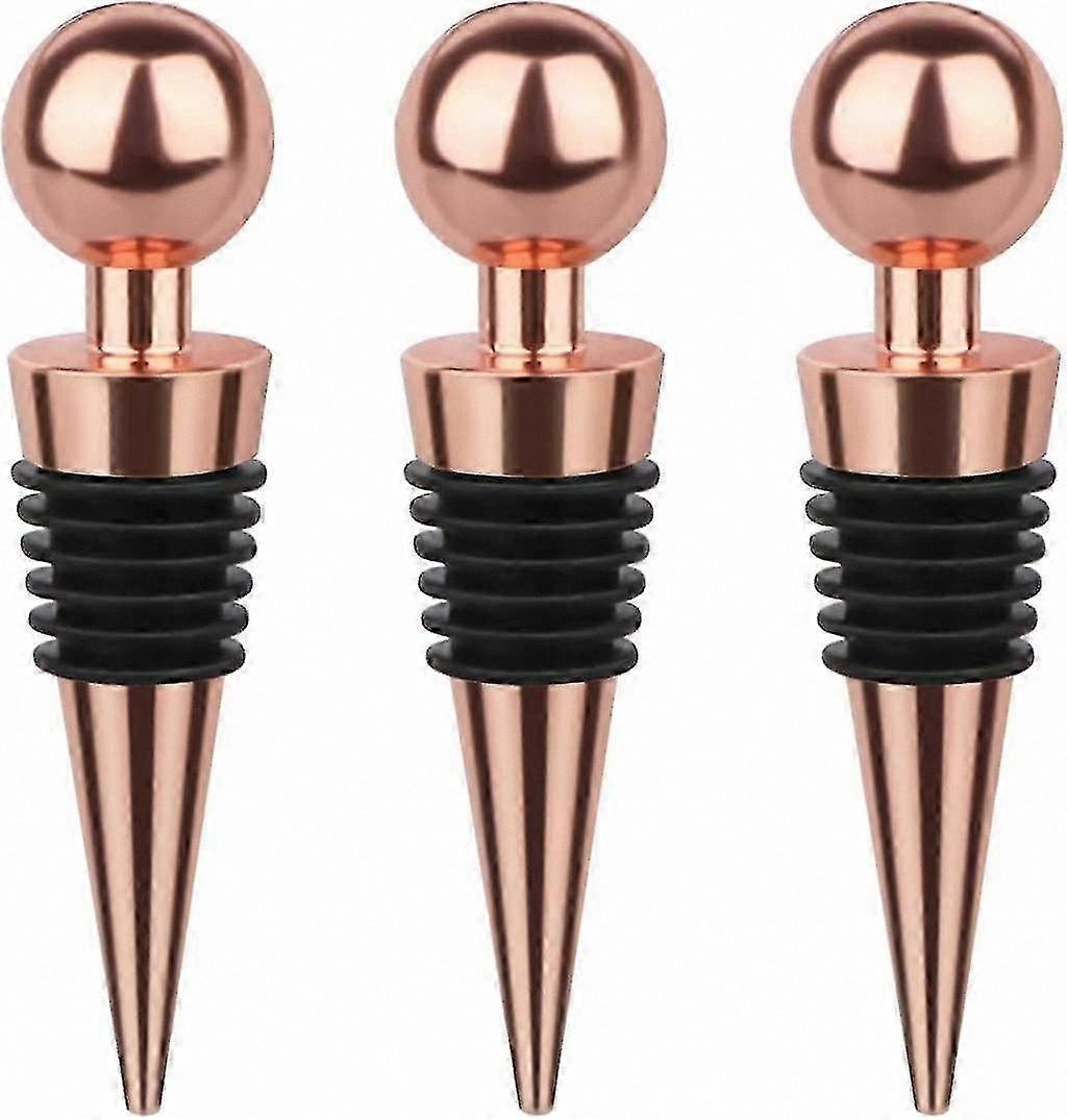 Rose Gold Plastic Wine Corks, Reusable Bottle Stoppers (3 Pack)