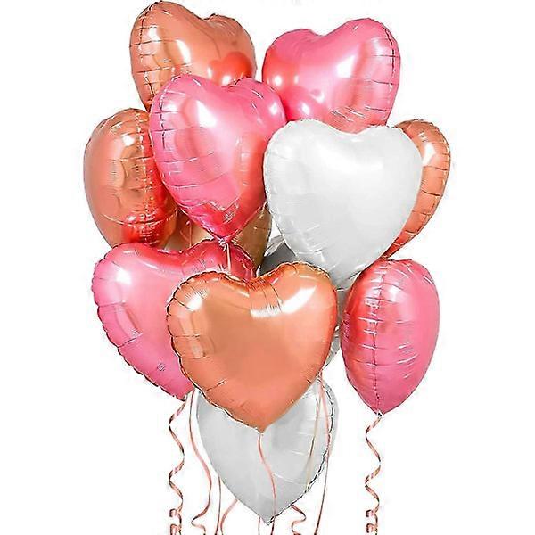 Large 12-Pack Rose Gold Heart Balloons - 18 inch | Mylar Pink Heart Balloons | Valentine's Day Decoration