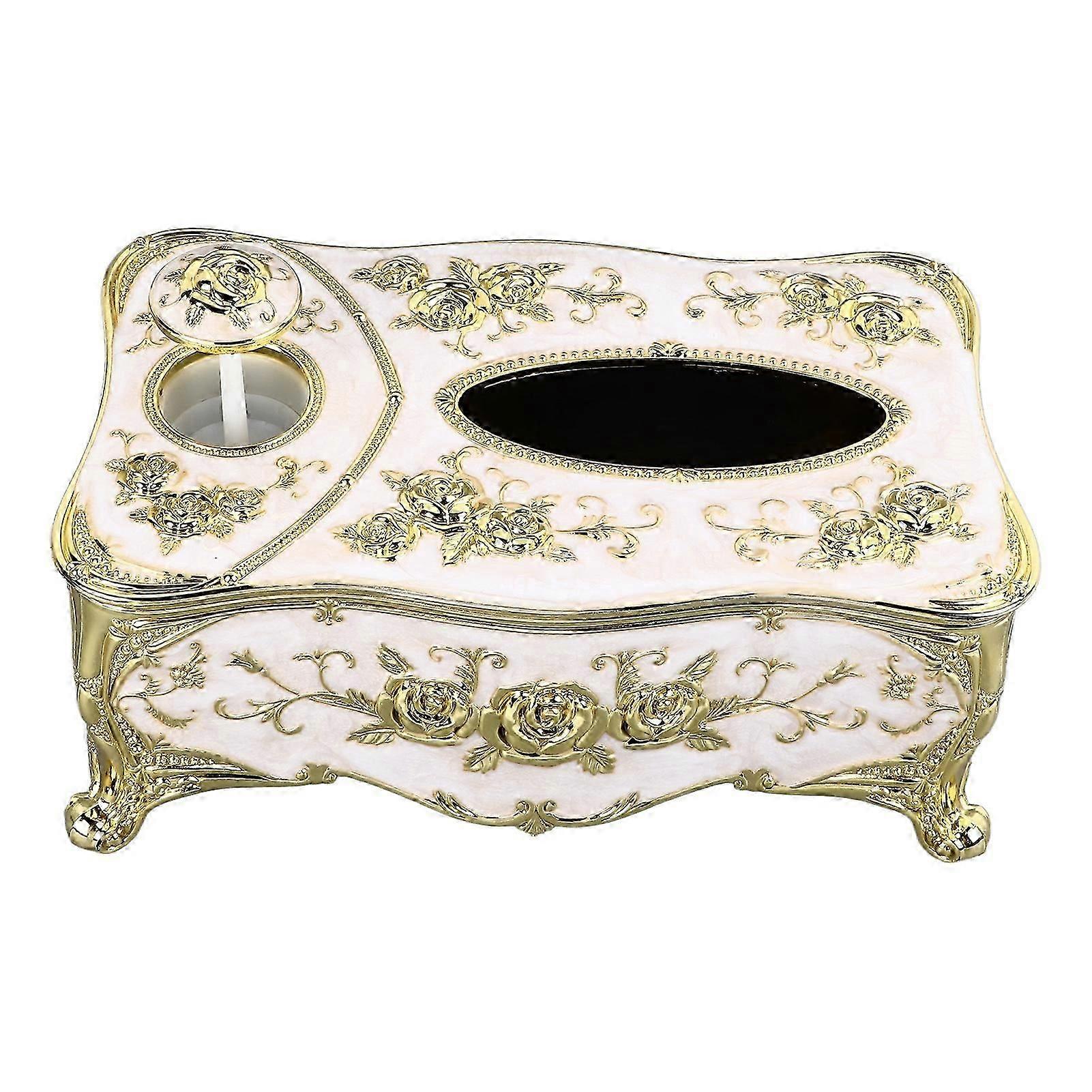 Rose Tissue Box 3D Rose Pattern Elegant Toothpick Slot Vivid Colors Strong PP Tissue Box Cover for Family Office Party Gold White Cover