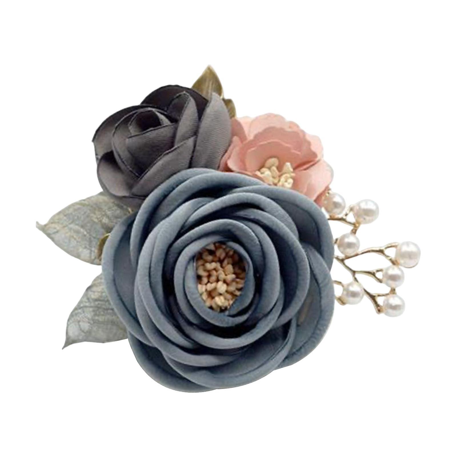 Rose Boutonniere Artificial Flower Corsage for Formal Prom Party Ceremony Grey