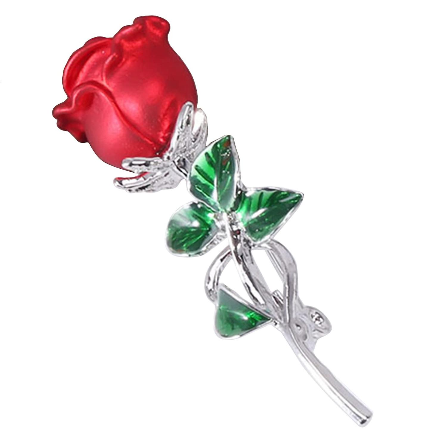 Rose Flower Brooch Enamel Leaf Breastpin Decorative Floral Lapel Pin for Women Party Banquet Wedding