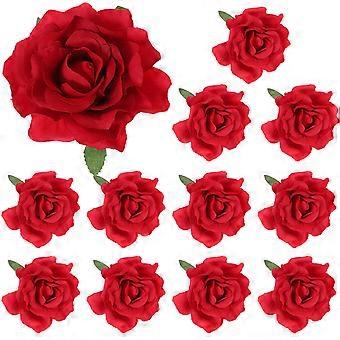 Rose Floral Rhinestone Hairpin Red Flower Hair Clip Polyester Hair Accessory for Women Girls Decoration for Wedding Party 12Pcs