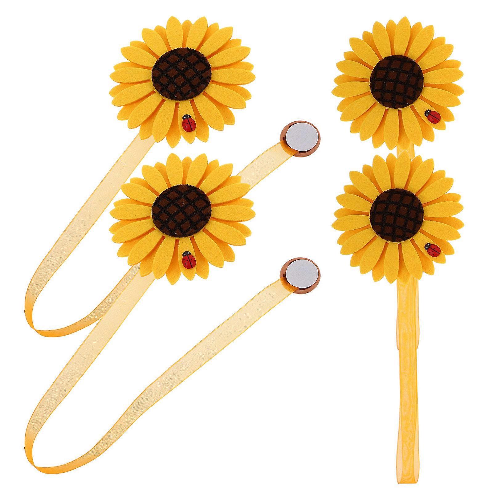 4pcs Magnetic Sunflower Curtain Tiebacks with Rope – Easy DIY Light Control Holdbacks for Living Room, Bedroom Decoration
