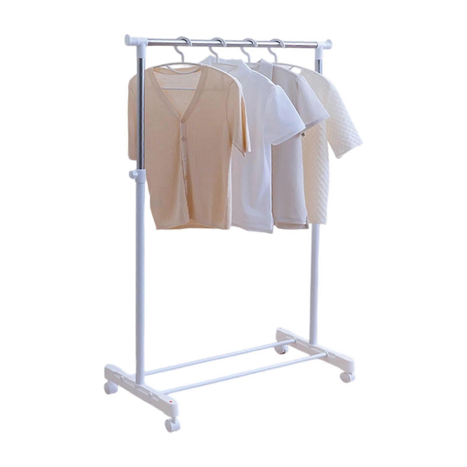 Rolling Garment Rack Telescoping Heights Adjustment Carbon Steel Frame For Bedroom Balcony Clothes Drying Organization Snow whitee