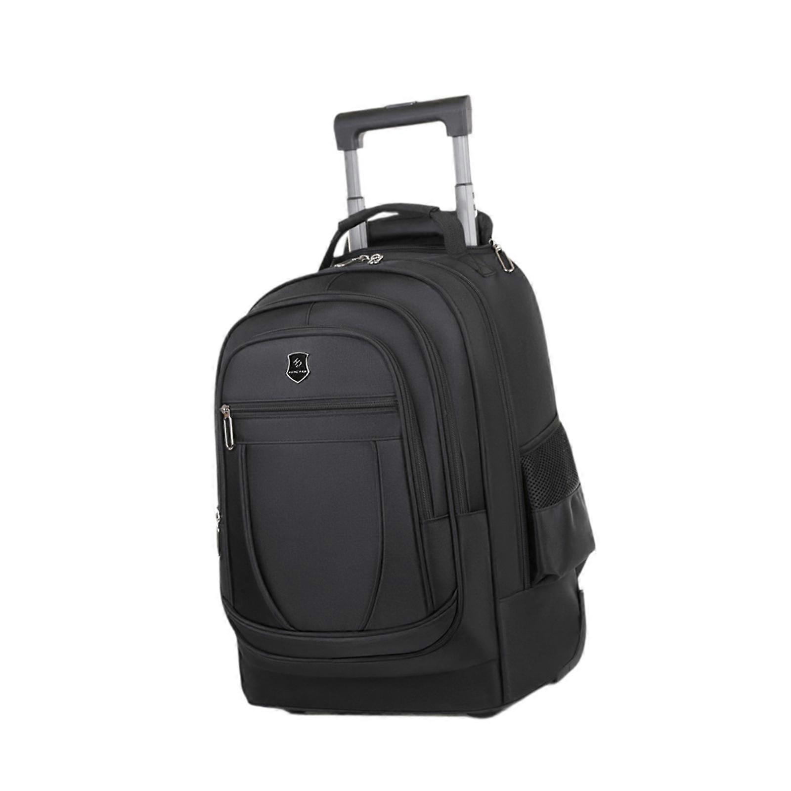 Rolling Backpack Portable Double Shoulder Bag for Overnight Business Camping Black