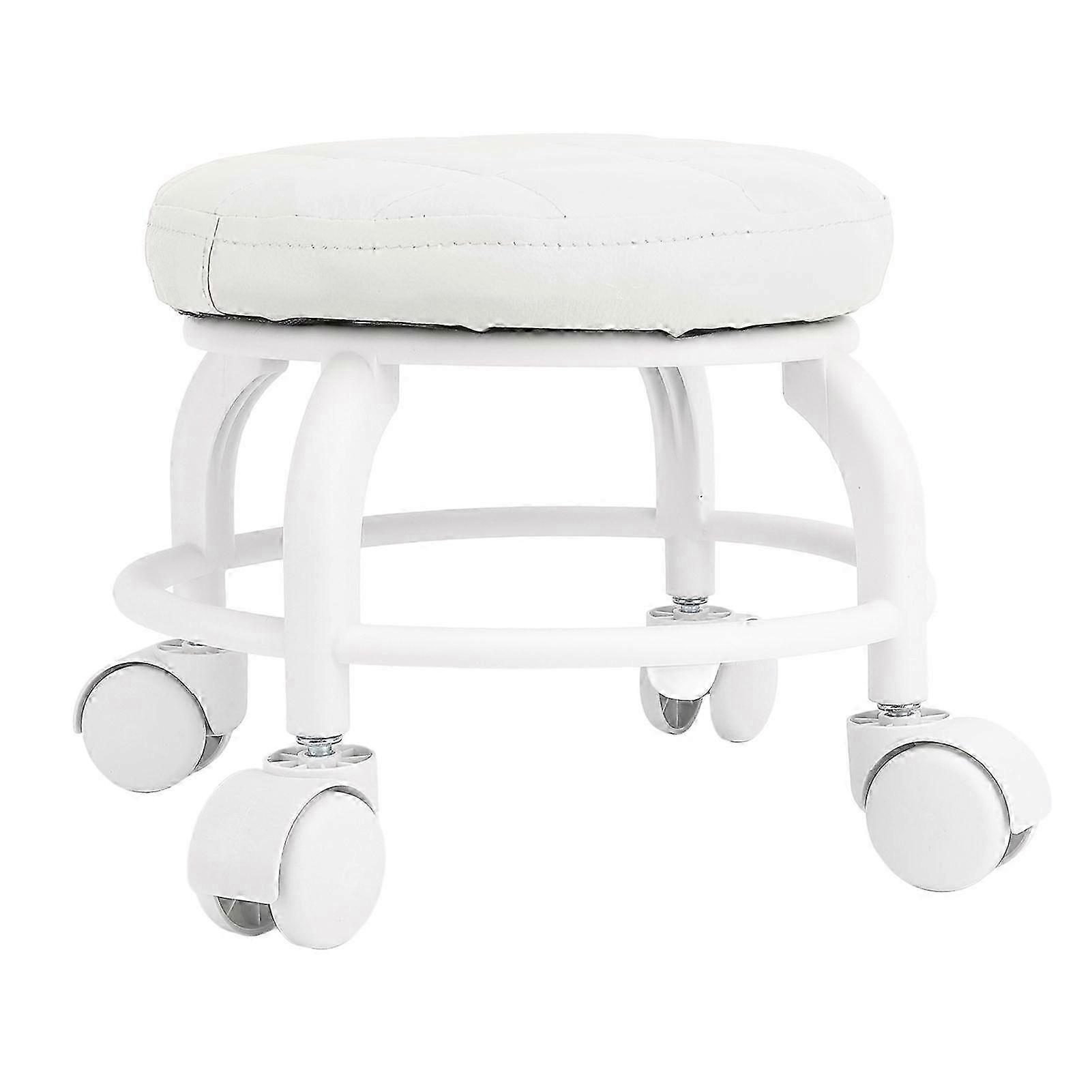 Low Roller Seat PU Leather Low Stool Mute Wheel Swivel Low Height Round Roller Chair for Home Office Garage Shop White